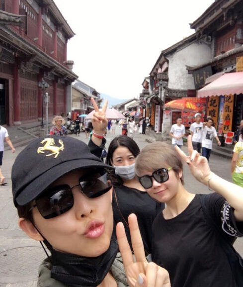 蔡少芬拍戏间隙游云南 一路都在吃不停